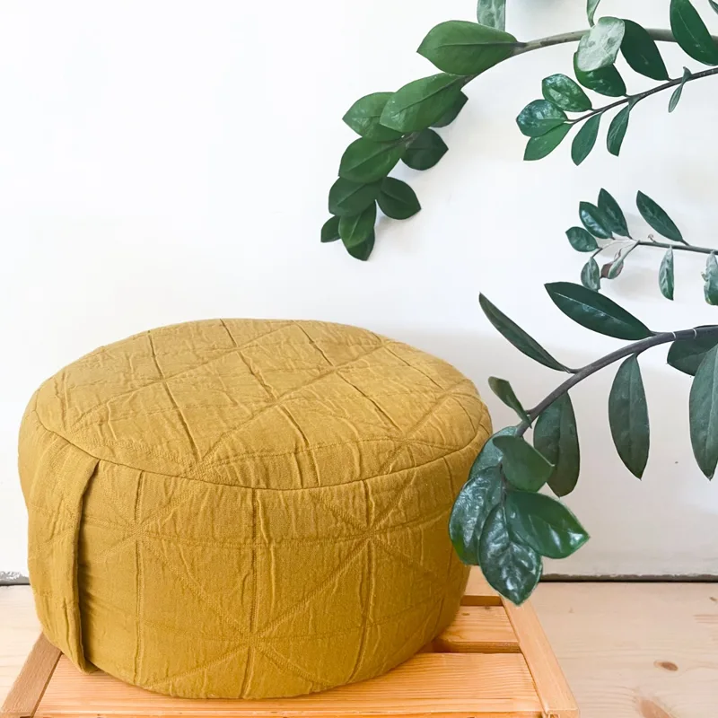 Stoff: Fürs Meditationskissen eignen sich etwas festere Stoffe, wie z.B. Canvas, Denim, Samt, Cord, schwerere Hanf- und Leinenstoffe, Wollstoffe oder die Tencel Sera Weighty Stoffe.