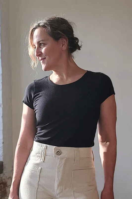 Fabrics: This pattern is designed for light to medium weight 4-way stretch knit fabrics with at least 50% horizontal and vertical stretch such as cotton stretch jersey, bamboo stretch jersey, stretch baby French terry, stretch thermal knit, stretch rib knit, stretch pointelle knit. Good stretch recovery is advised so that neckbands don't stretch out, however, too much stretch recovery may result in a tighter fitting t-shirt.