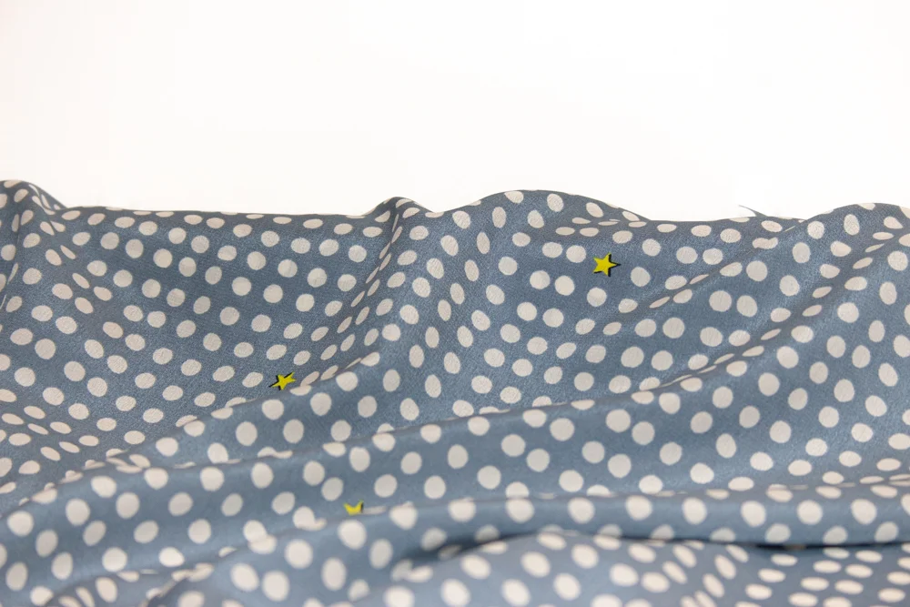 Reiner Seidenstoff aus Designer-Deadstock-Beständen. Dieser feine Crêpe-Stoff hat einen matten Glanz und eine leicht sandige Oberfläche. Er ist durchgefärbt und bedruckt, wobei der Druck beidseitig sichtbar ist. Der Stoff kann also auf beiden Seiten verwendet werden. Er hat einen schönen fliessenden Fall und eignet sich sowohl für elegante Bekleidung wie auch als Futterstoff, beispielsweise in einem Wollmantel.
