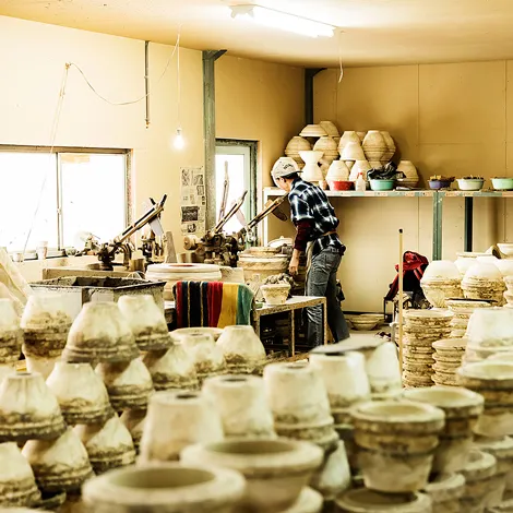 Shigaraki Keramik in Form eines Knopfs, hergestellt von Mejzan Gama, einem Handwerksbetrieb, den es seit 1622 in Koka, Shiga Präfektur in Japan gibt. Shigaraki Keramik ist gekennzeichnet durch ihren erdigen Charakter, sie ist einfach und robust. Jedes Stück ist ein Unikat und wird bestimmt durch die unregelmässige Natur der Shigaraki Keramik. Es erinnert an das Konzept des "wabi-sabi" - der Schönheit des Imperfekten.