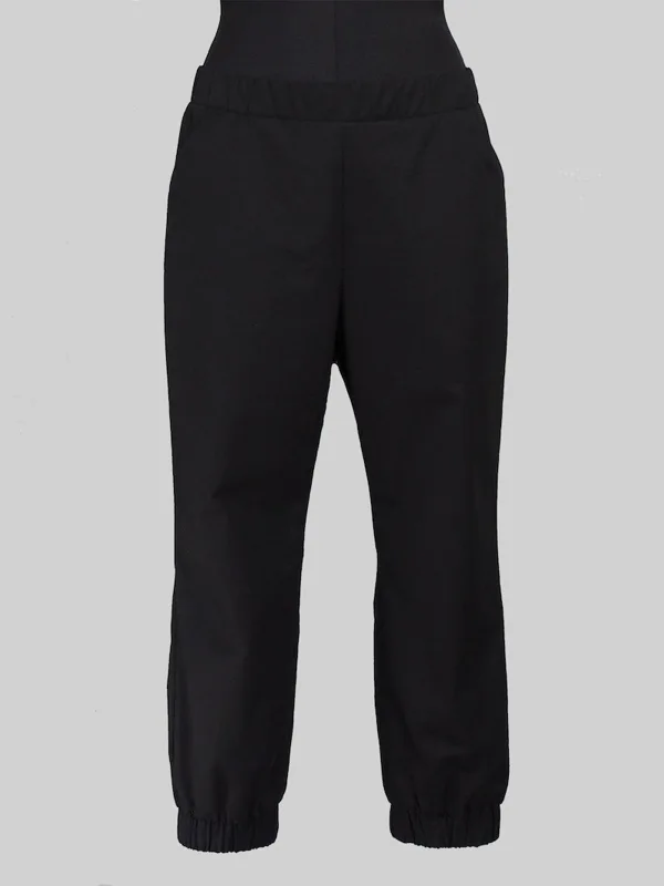 Almost long trousers pattern can really change style depending on fabric choice - from office cool to loungewear. These pants have a relaxed fit, positioned at the lower waist, and dropped crotch. The leg tapers to the ankle, waistband and bottom cuffs are elasticated. The trousers feature in-seam pockets.