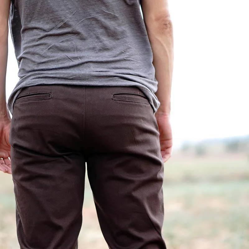 Simple and stylish, the Men's Chino Pants sewing pattern is a versatile addition to your wardrobe. These pants have a slim fit that is both flattering and comfortable. They have a traditional front fly and a straight waistband with belt loops. The Chino Pants pattern includes slightly slanted deep front pockets and sleek welt pockets in the back. Depending on the fabric you choose and the shirt you pair them with, the Chino Pants can take you anywhere, from the office to an evening out to running errands on the weekend.