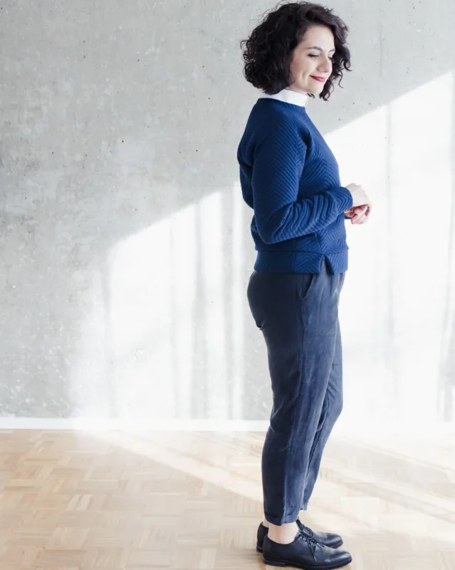 Das Schnittmuster für die Hose Wrapped eignet sich für ambitionierte Nähanfänger mit Erfahrung beim Kleidernähen, die sich an das Nähen ihrer ersten Hose wagen möchten.