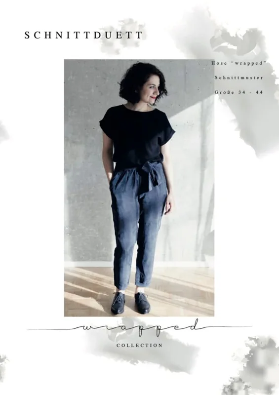 Das Schnittmuster für die Hose Wrapped enthält alles, was Du zum Nähen einer lässig geschnittenen, bequemen Hose mit 7/8-Länge, hohem Bund mit Gummiband für bequemen Tragekomfort sowie integrierten Bindebändern brauchst. Sie ist der perfekte, lässige Alltagsbegleiter wenn sie beispielsweise aus fließender Webware genäht wird. Wählst Du edlere Stoffe wie Seide, bist Du auch für besondere Anlässe perfekt gekleidet. Im Sommer macht sie sich gut aus Leinen. Genäht mit leichteren Wollstoffen ist die Hose auch perfekt für den Winter geeignet.
